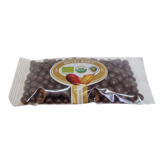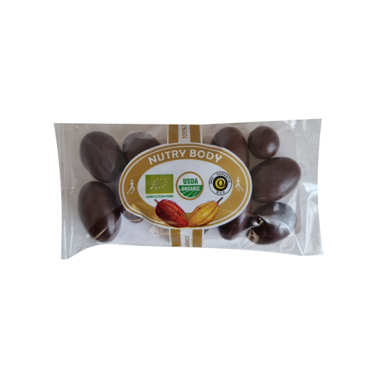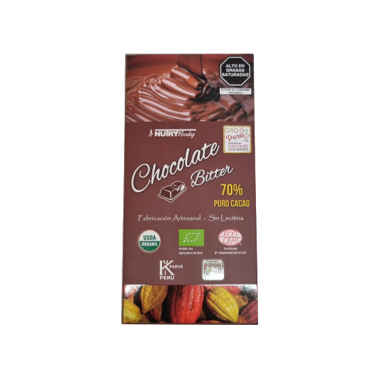 Ingredientes: Aguaymanto, chocolate bitter, pasta de cacao orgánico, azúcar panela orgánica y manteca de cacao orgánica.