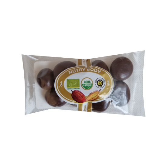 Aguaymanto bañado en chocolate. Fabricación artesanal. Sin lecitina.