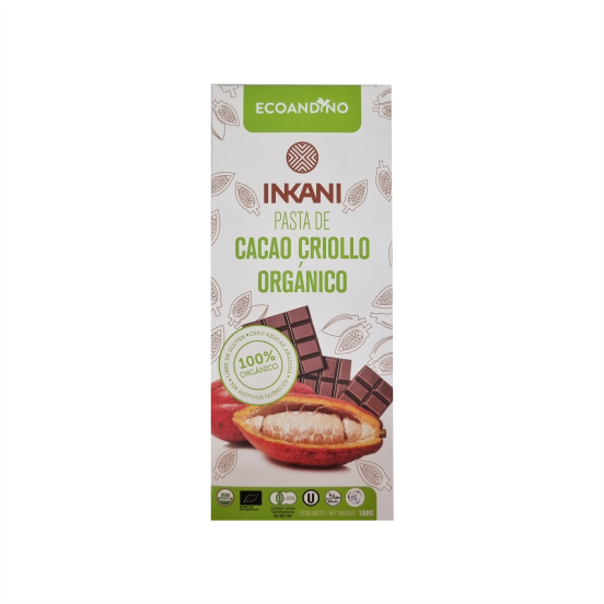 Pasta de cacao criollo orgánico Inkani Ecoandino, 100 gr